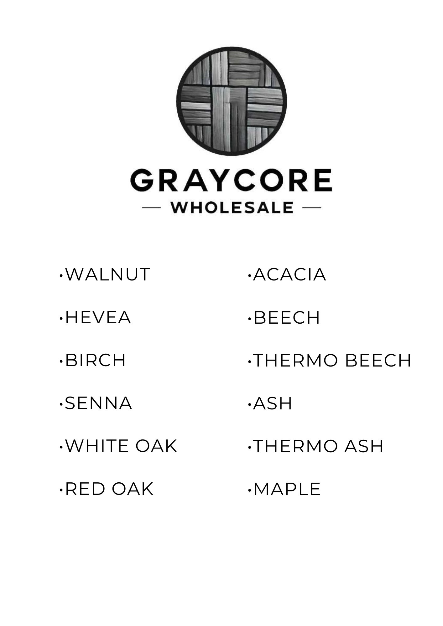 Acacia, Hevea, Birch, Red Oak, White Oak, Thermo Beech, Senna, Walnut