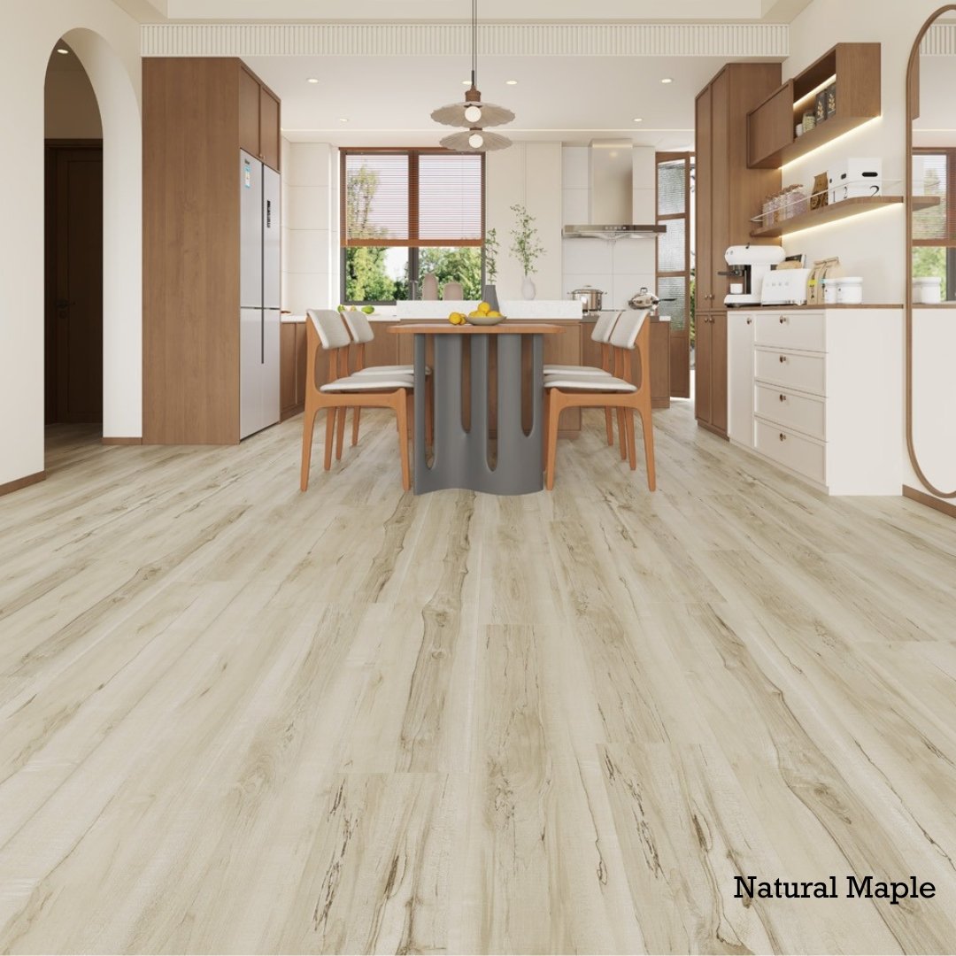 Built with a rigid core and protected by a UV coating, each plank resists scratches, stains, and fading—making it ideal for high-traffic areas like kitchens, offices, and retail environments. The integrated 1.5mm IXPE backing adds acoustic insulation and underfoot comfort, while the waterproof construction ensures long-term resilience in moisture-prone spaces.