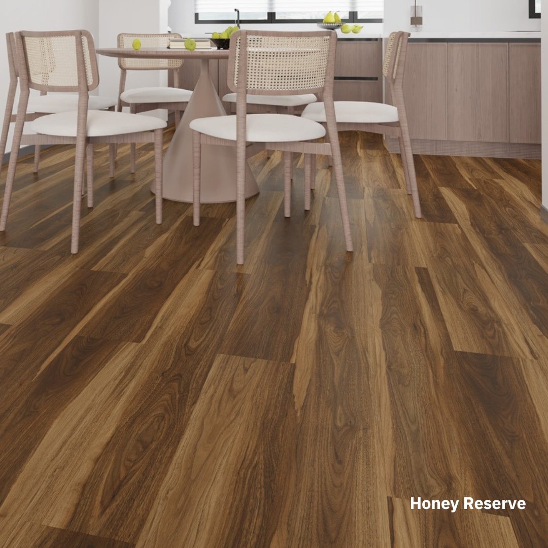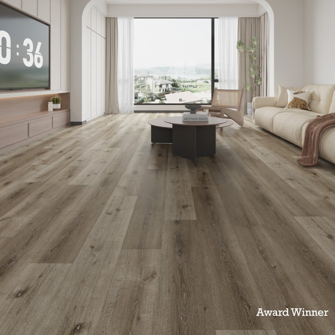 100% waterproof luxury vinyl with hyper-realistic wood and stone textures.